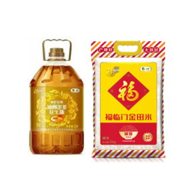 1、中粮福临门福泰安康油酸多多花生油5L 2、中粮福临门金田赋香东北米5kg 3、福临门超精多用途小麦粉5kg 4、卡宴黑金五谷杂粮礼盒2630g